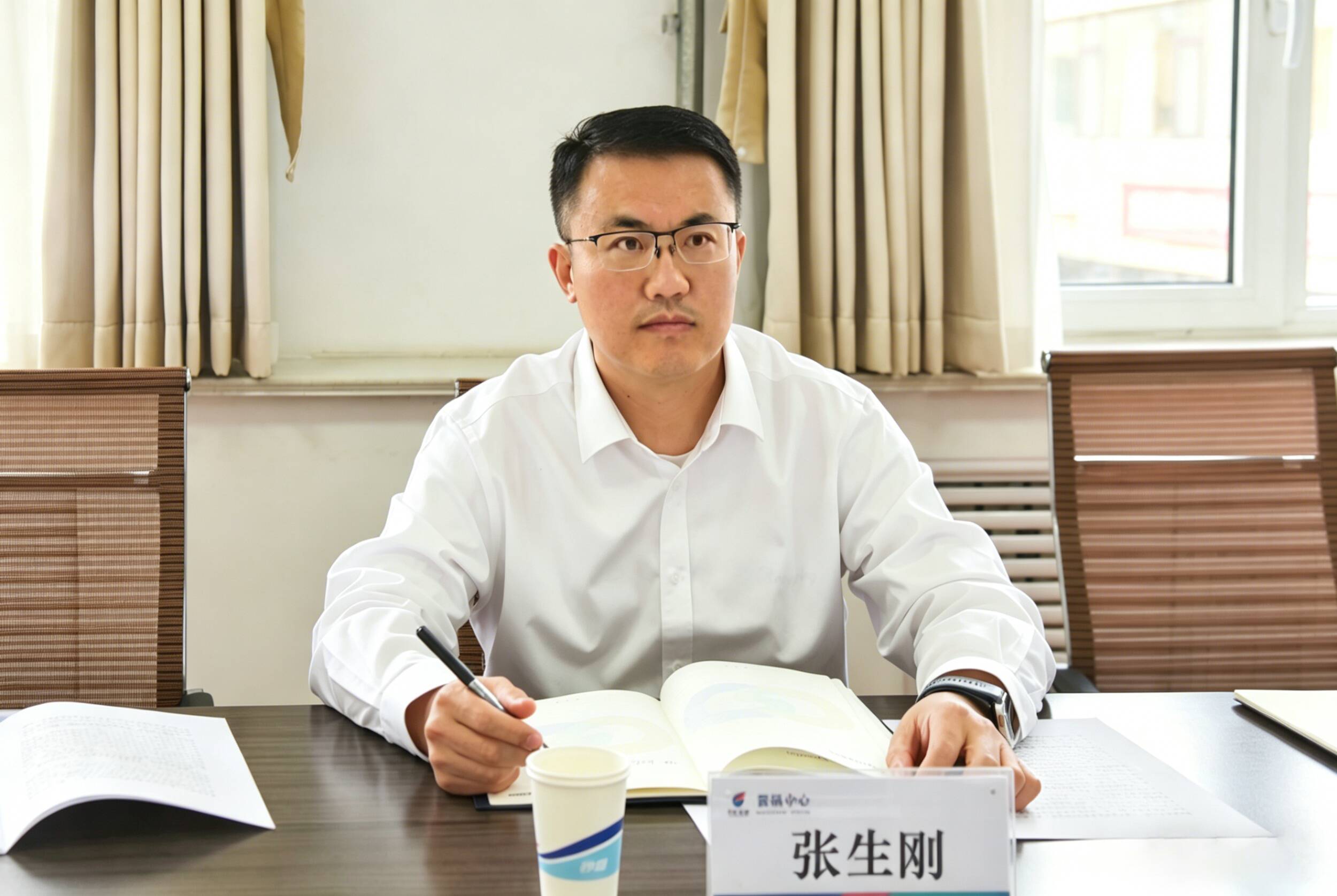 图为张生刚听取营销中心工作开展情况汇报