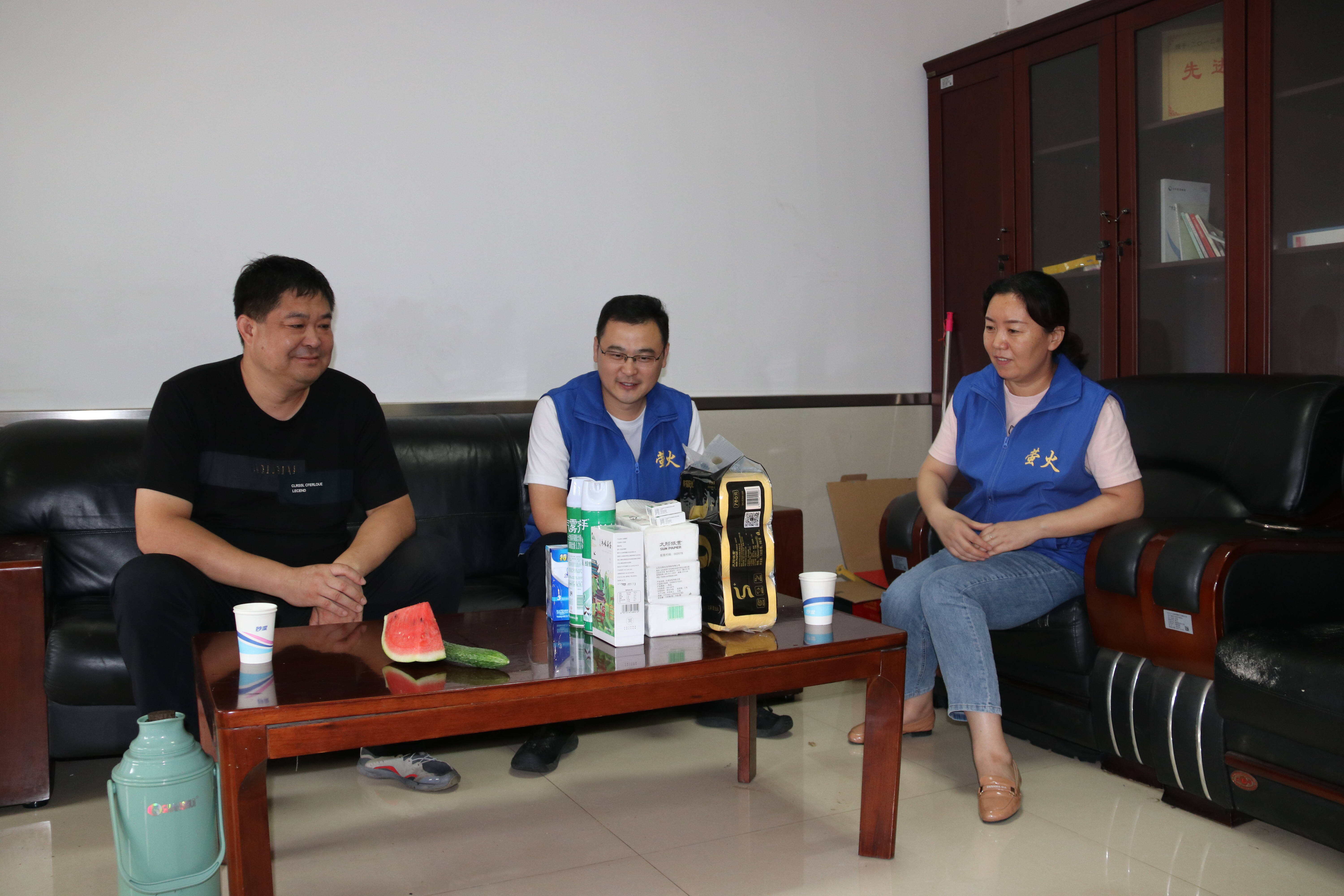 活动中,“萤火”志愿者们深入市场营销科、驻矿营销科,向在高温酷暑中奋战在营销一线的员工表示深切的慰问,在给他们送去防暑降温物资的同时,嘱咐员工夏季高温要注意防暑、暴雨防灾避险,保证以良好的精神状态和健康的体魄投入到工作当中去。