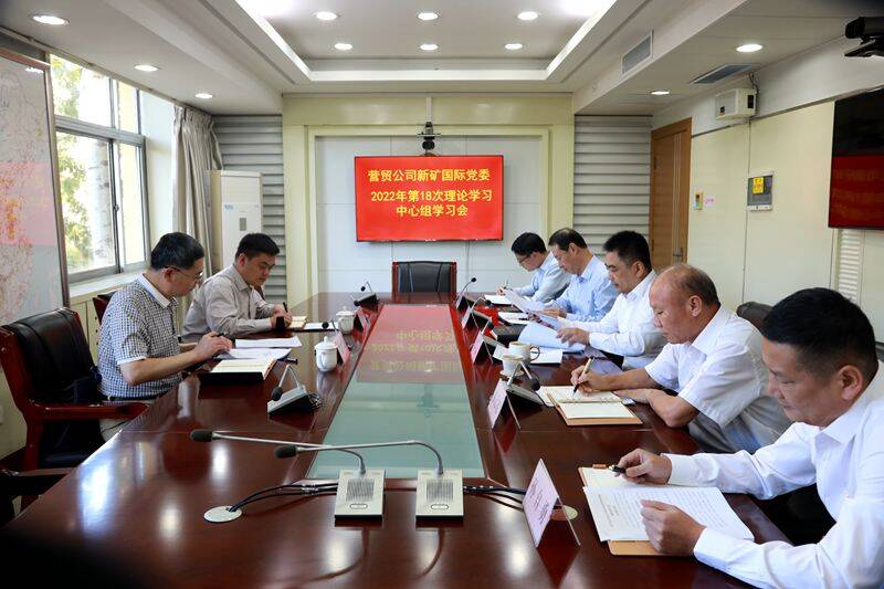 本网新汶讯 9月23日下午,新矿国际召开第18次党委理论中心组学习会,公司党委书记董事长、总经理张磊主持会议,在家领导班子成员参加会议。新矿集团党委宣传部部长彭学海一行列席旁听本次会议。