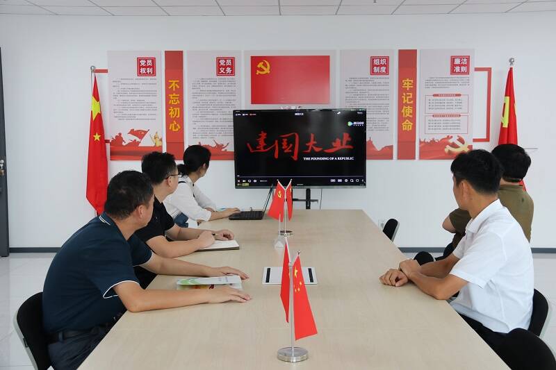 本网临沂讯 9月30日上午,在第73个国庆节到来之际,临沂营销处经营管理党支部开展了“喜迎二十大 欢度国庆节”主题党日活动,组织支部党员观看了影片《建国大业》,回顾党的光辉历程,激发广大党员干部的爱国热情。