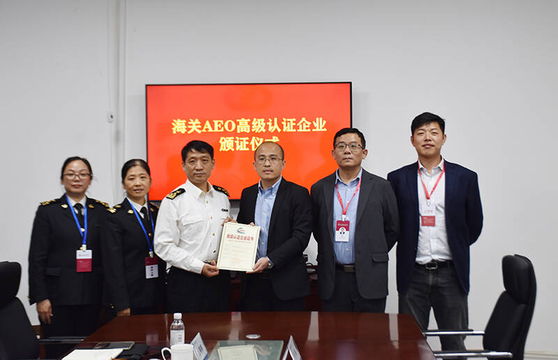 黄岛海关为该公司颁发《AEO高级认证企业证书》