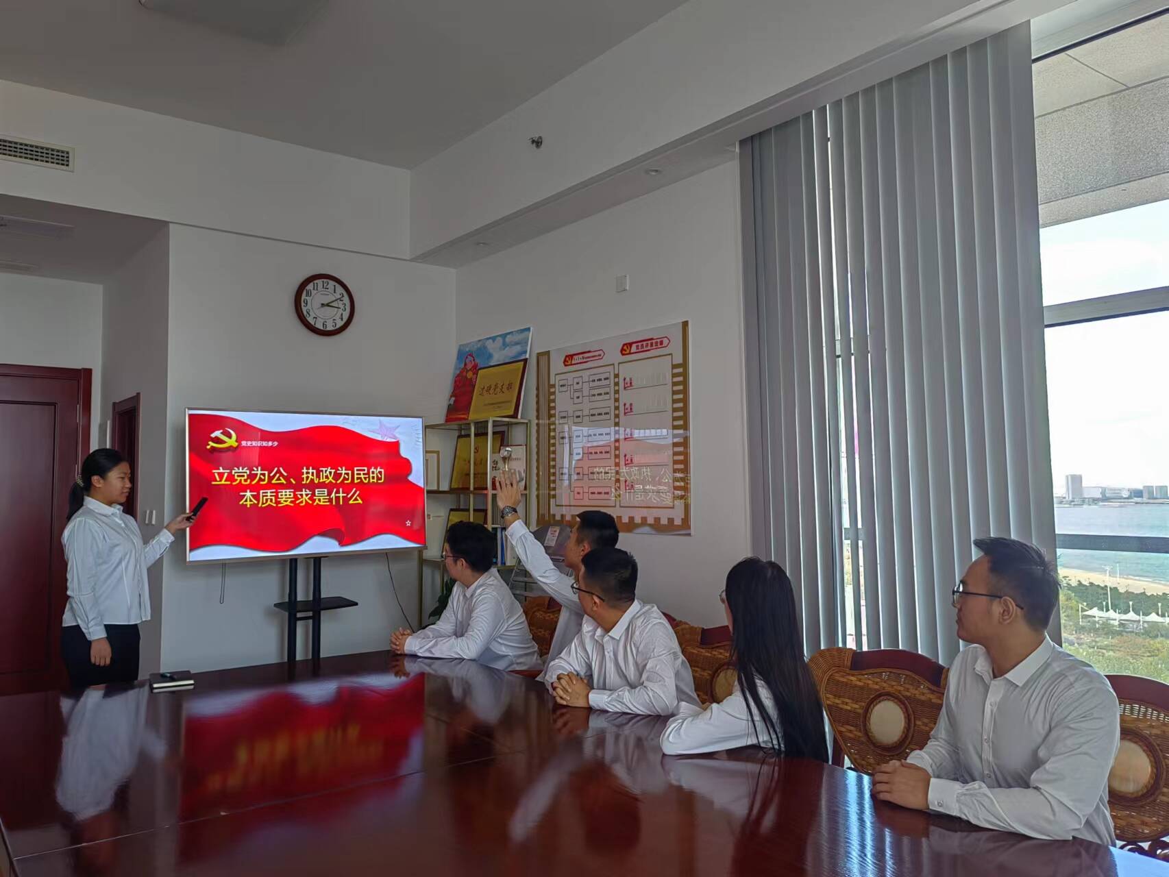 图为盛隆公司青年员工正在抢答党史知识