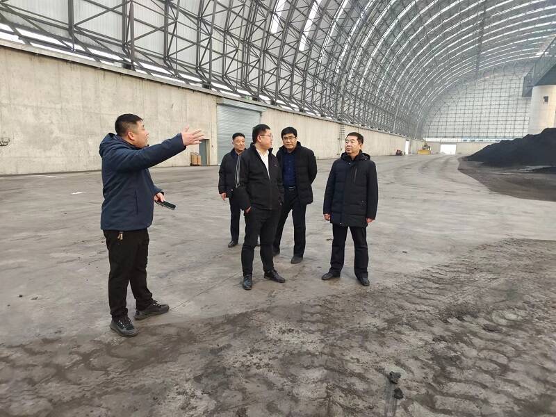 图为鲁西分公司人员在唐口煤业储煤棚调研