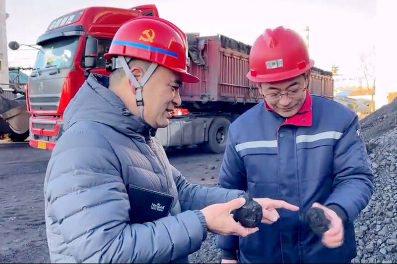 (驻矿营销科党员在煤场)