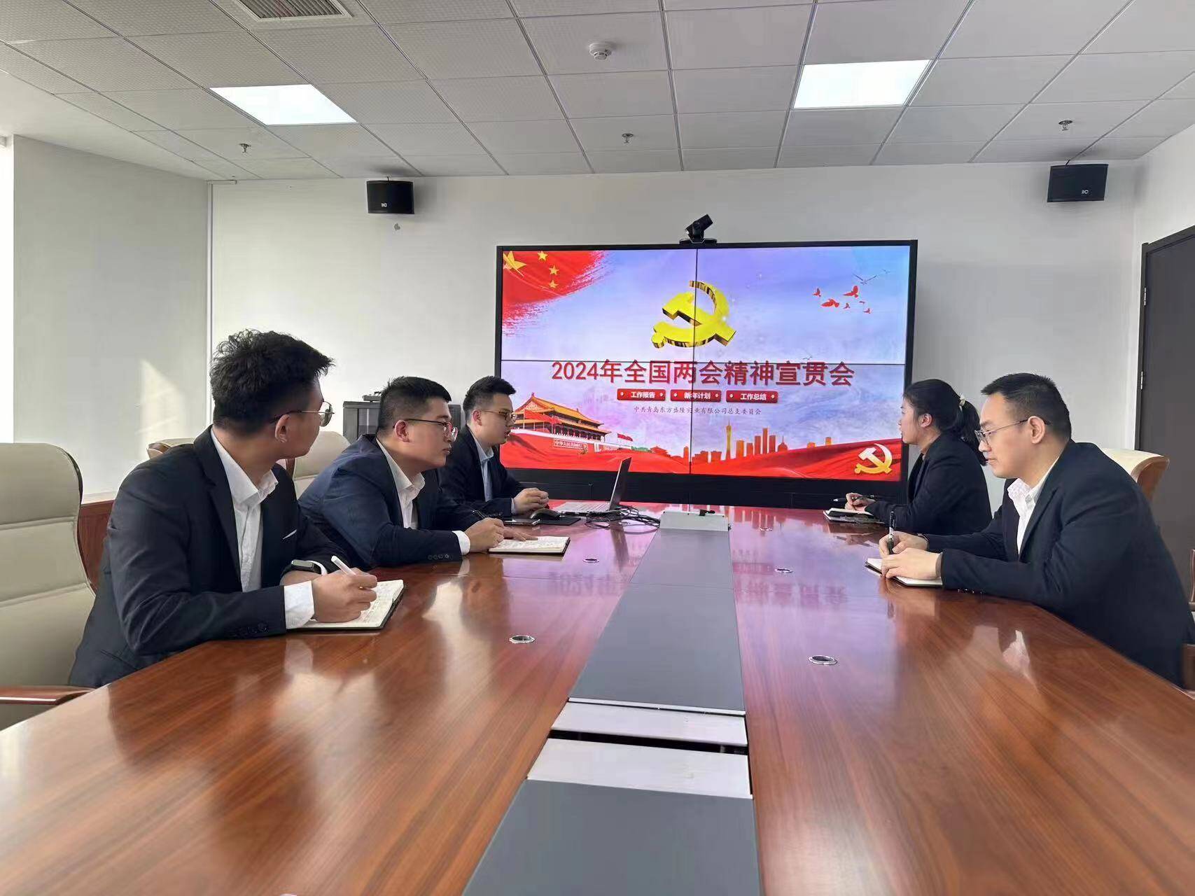 图为青岛盛隆公司青年员工集中学习两会精神