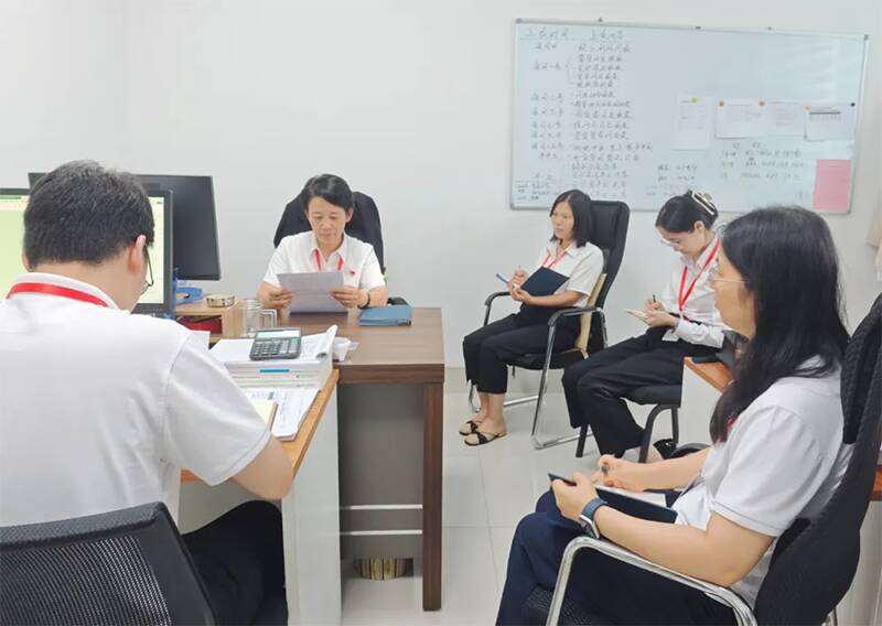 图为党员在部门宣讲全会精神、开展形势任务讨论
