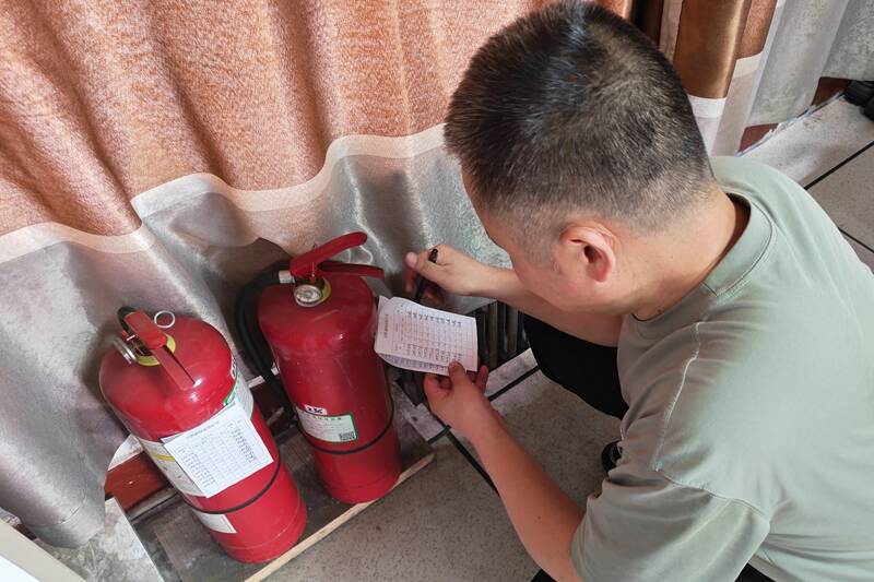 图为检查消防设施