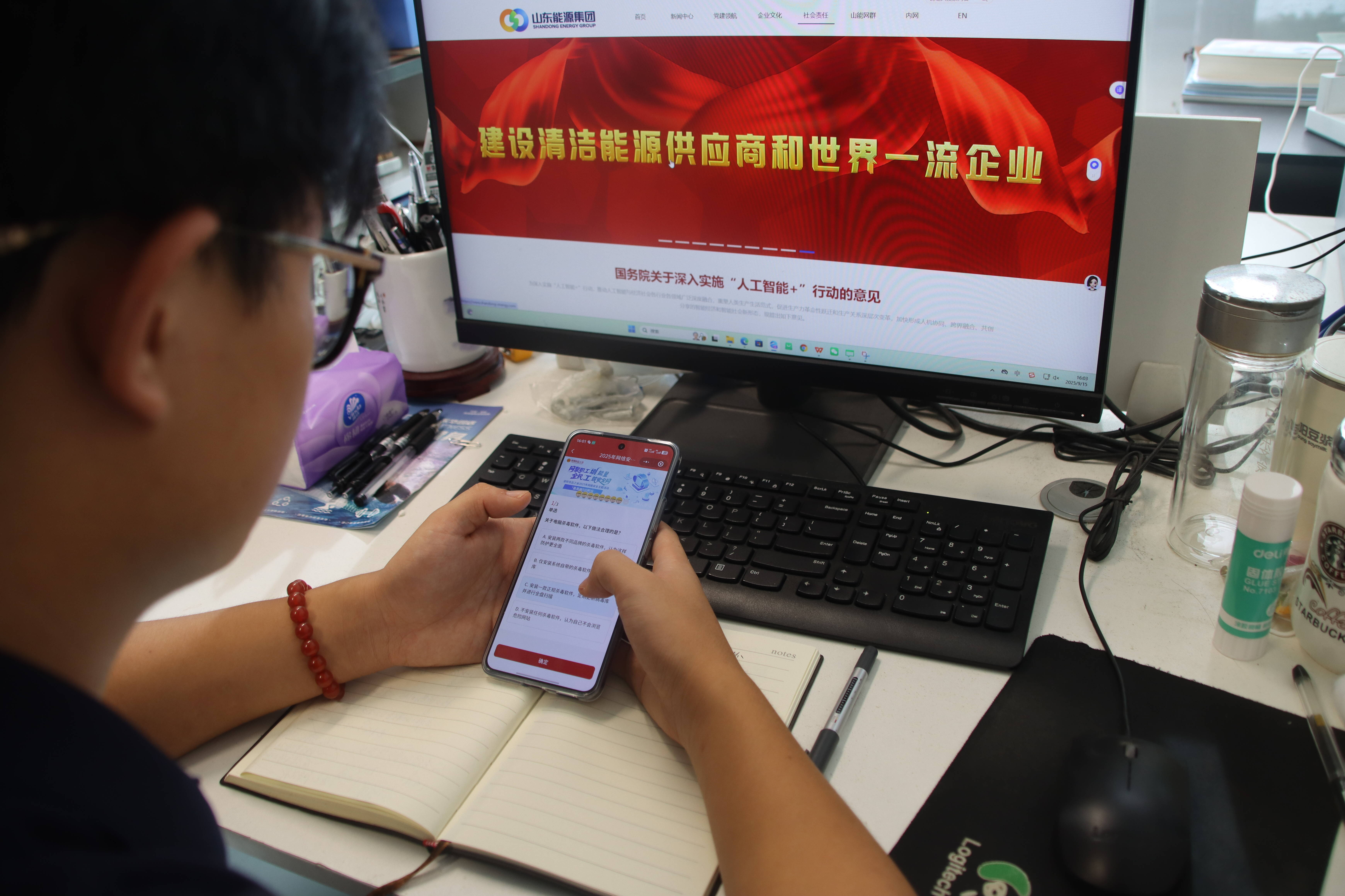 图为员工参与线上答题活动