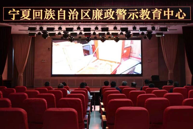 图为鄂尔多斯公司党总支在宁夏廉政教育中心观看警示教育片