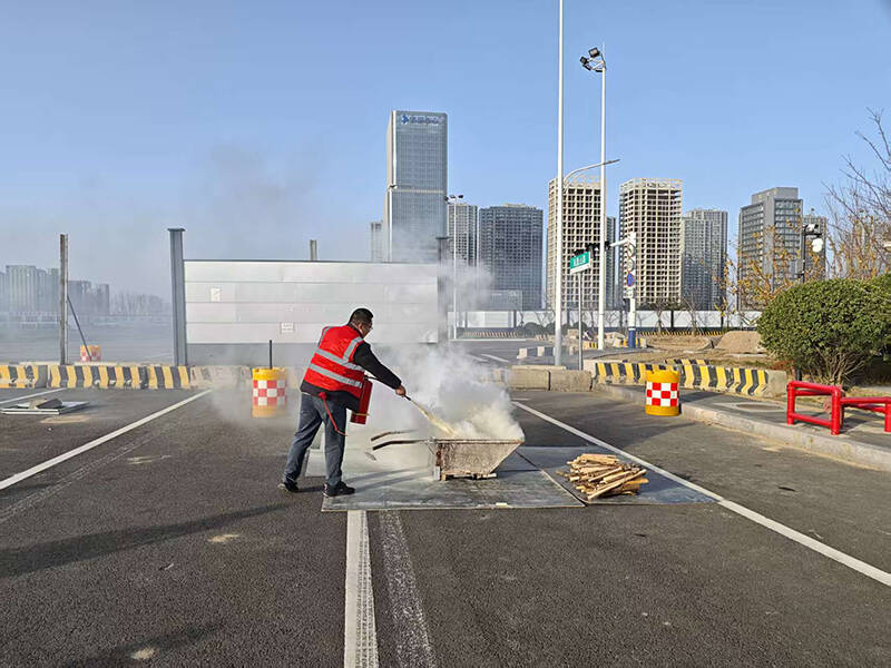 随后,全体人员至楼下广场集结,开展灭火实操演练。专业讲师现场演示了消火栓、干粉灭火器的正确使用方法,讲解了不同火情下的灭火技巧和安全注意事项。参与人员分批次进行实操练习,进一步巩固了灭火技能。