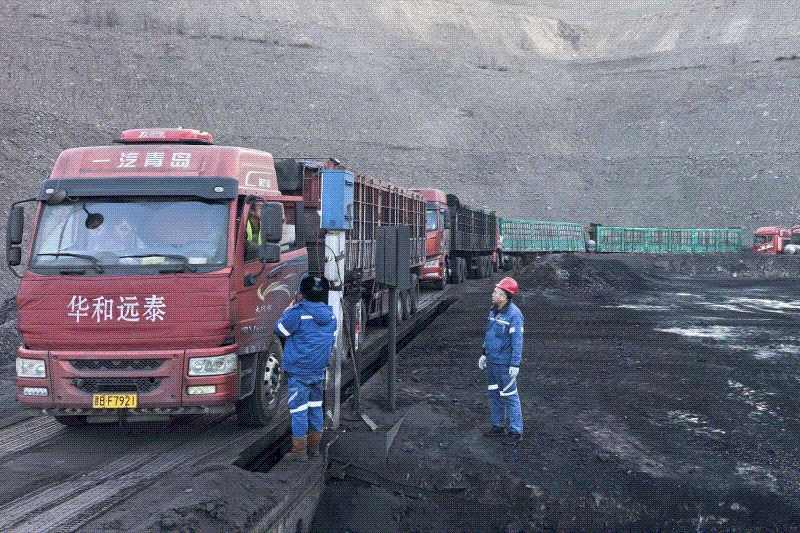 图为鄂尔多斯公司驻矿一线营销人员监督煤炭发运现场