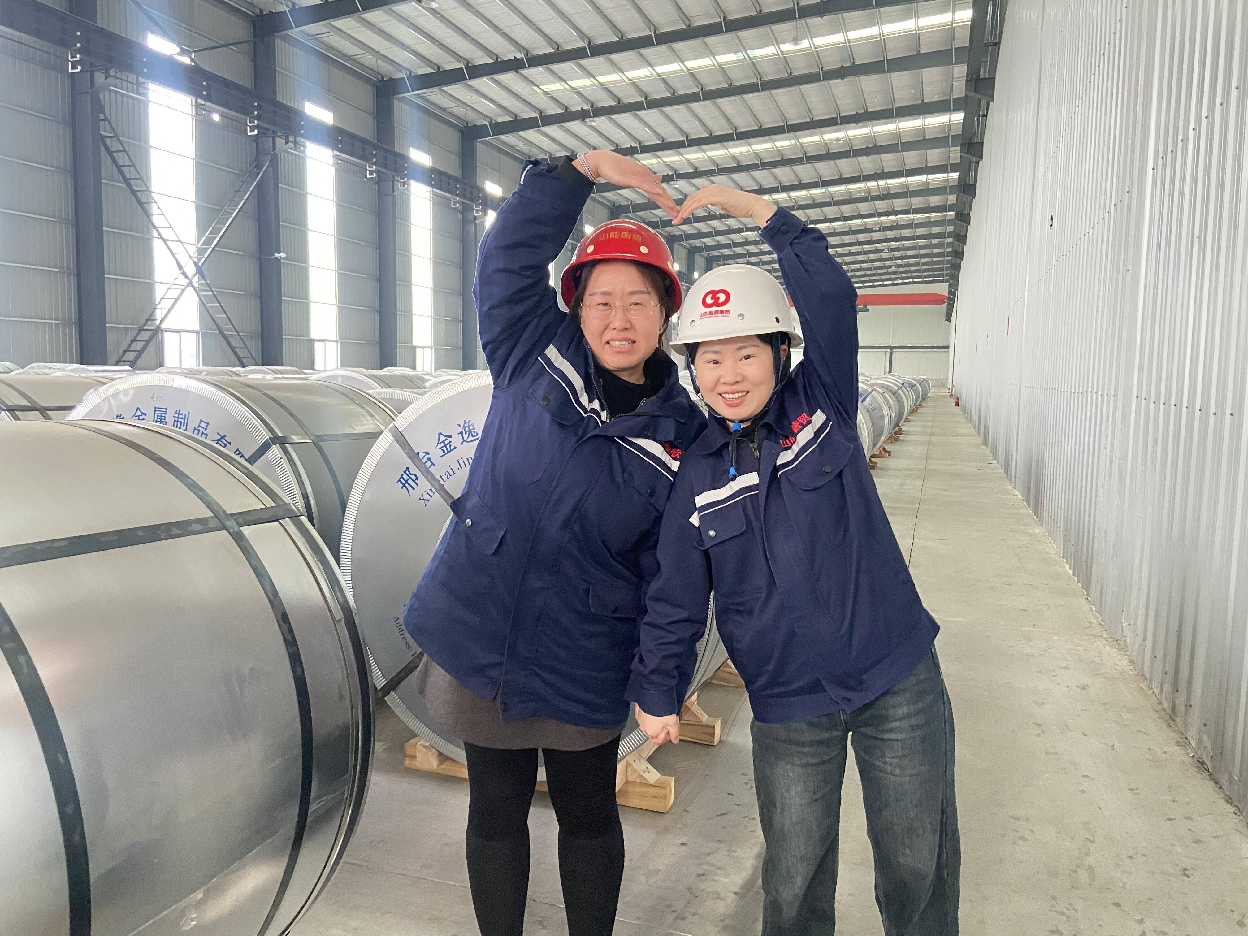 图为仓库员工统一着“山能营贸”装合影