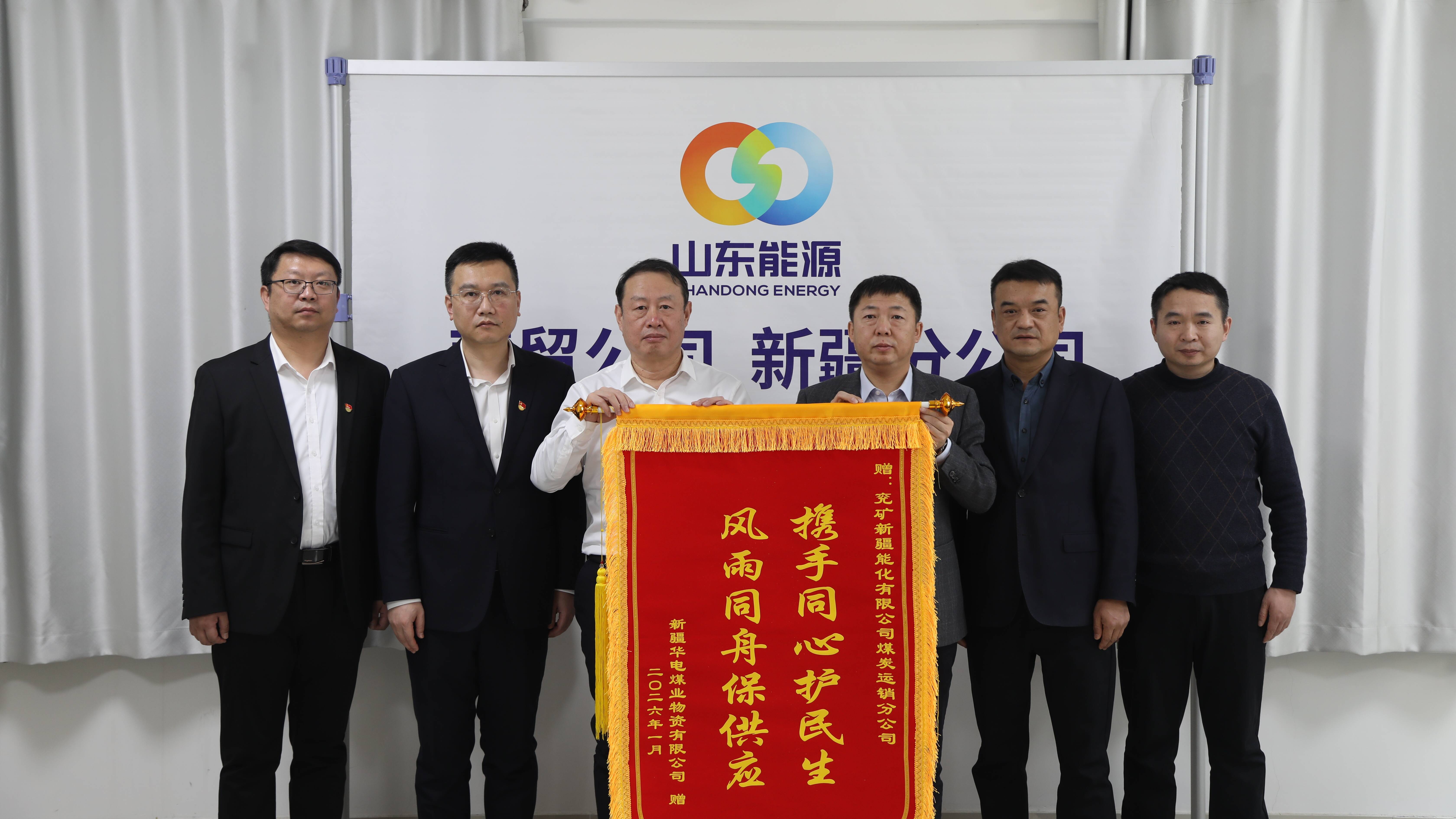 本网新疆讯 近日,新疆华电煤业物资有限公司一行赴新疆运销分公司赠送题为“携手同心护民生 风雨同舟保供应”的锦旗,对新疆运销分公司在煤炭市场开发、客户服务保障和能源稳定供应等方面取得的成效,表示高度认可和诚挚感谢。