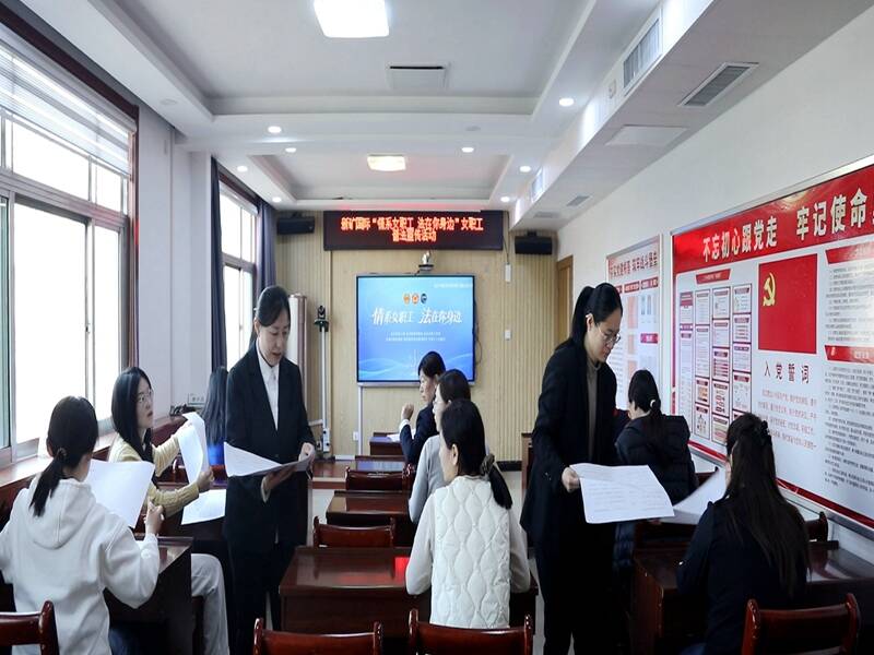活动现场,全体女职工齐聚一堂,共学法律知识、共护自身权益。本次活动紧扣女职工工作生活实际,以“精准普法、实用维权”为核心,精心设置法治宣讲、法条解读、互动答疑、知识考试四大环节。在法治宣讲环节,工作人员围绕女职工合法权益和特殊利益,重点讲解“五期”劳动保护、职场维权、婚姻家庭、生育保障等热点难点问题,结合企业实际与典型案例,用通俗易懂的语言拆解法律条文,让抽象的法律规定更加接地气、更具操作性。在法条解读环节,重点聚焦《妇女权益保障法》中劳动报酬、职业发展、特殊保护等核心条款,以及《女职工劳动保护特别规定》中孕期、产期、哺乳期权益保障内容,逐点解析、答疑释惑,帮助女职工精准掌握法律赋予的权利与义务。